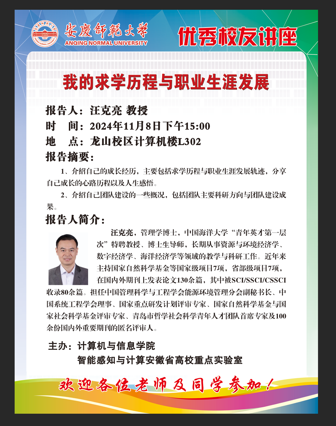 11月9日上午,第六届安徽省计算机大会青年学者科研发展论坛在安庆举行。校党委常委、副校长申传胜,国家自然基金委员会信息部二处处长吴国政,安徽省计算机学会理事长陈恩红等出席论坛,…