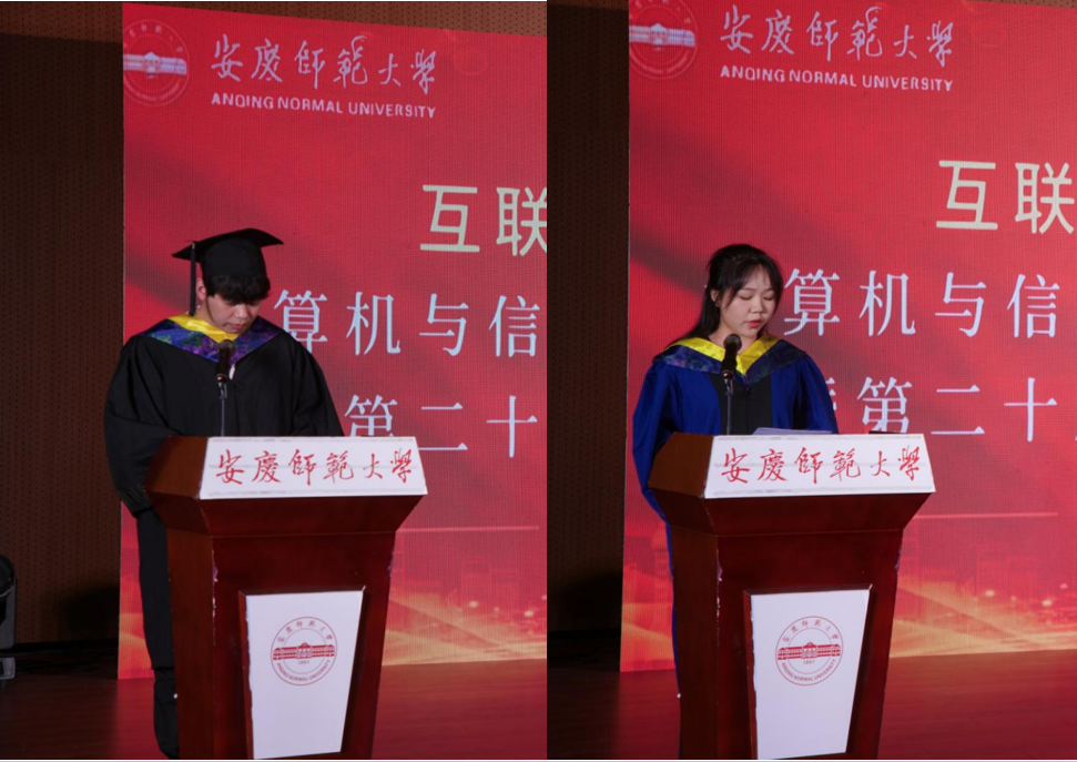 毕业典礼上,吴海峰宣读了优秀毕业生名单,教师代表刘慧送上真诚的毕业祝福,研究生代表陶丽青和本科生代表李登峰分别发言,回顾了校园生活,表达了对学校和老师的不舍与感激!与会领导老师为毕业生代表拨穗,颁发证书。