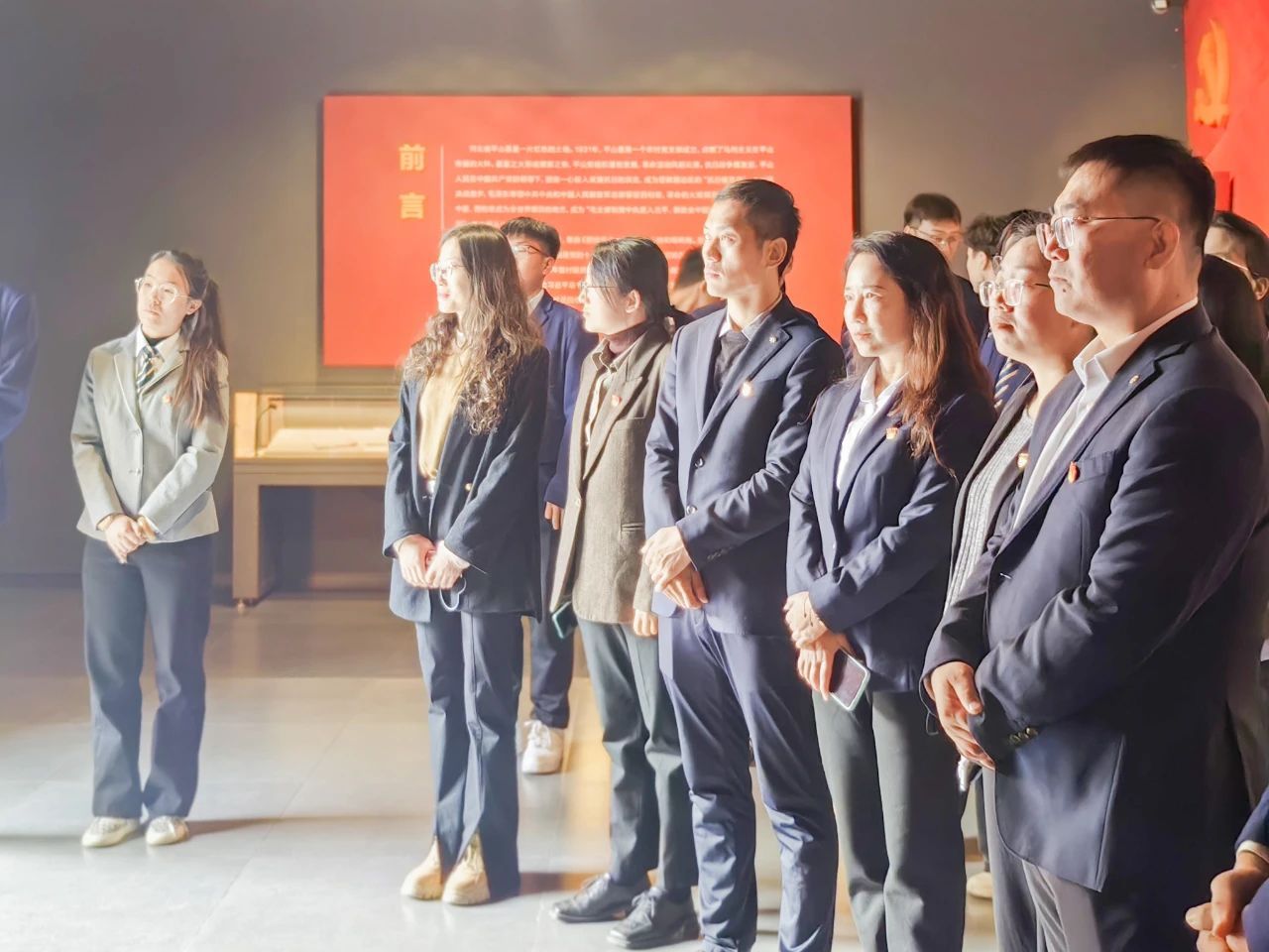 追溯峥嵘岁月,传承爱国精神。全体师生党员走入曹火星纪念馆,认真观看了纪念馆内陈列的照片、实物等史实材料,观摩词曲作者曹火星同志的创作手稿。学习人民音乐家曹火星的成长历程及《没有共产党就没有新中国》的创作背景和历史影响。参观结束后,在场馆前举行了纪念仪式并合影留念。