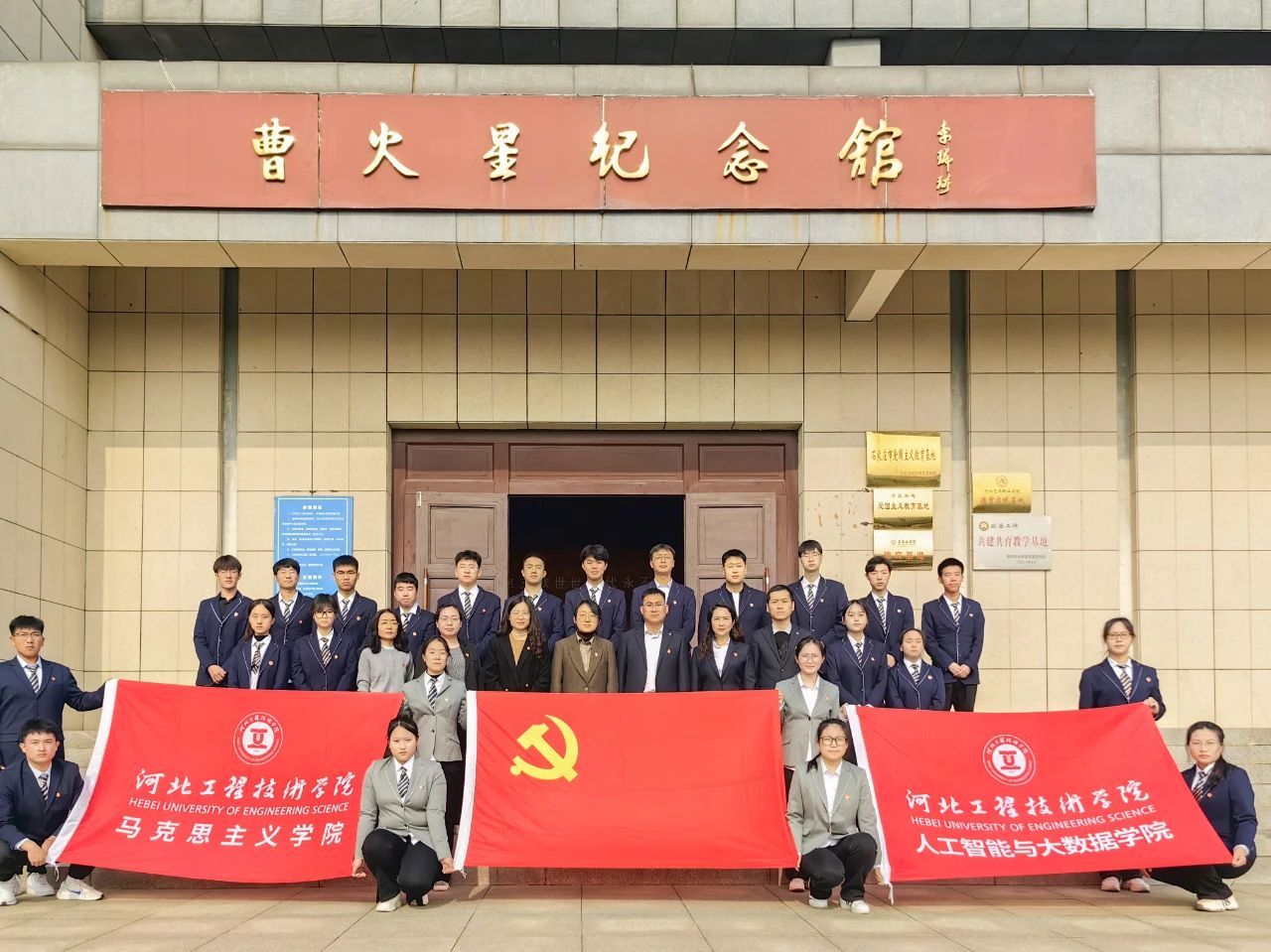 为庆祝中华人民共和国成立75周年,重温中国共产党的百年奋斗之路,Beat365官网人工智能与大数据学院党总支于10月25日,赴石家庄平山县开展“唱响红色旋律,赓续革命精神”主题党日活动。学校党委组织部(统战部)部长李忆秋、副部长姜琪,人工智能与大数据学院党总支书记尹钧,马克思主义学院副院长李洁、副院长苗正超,师生党员代表和积极分子代表参与此次活动。