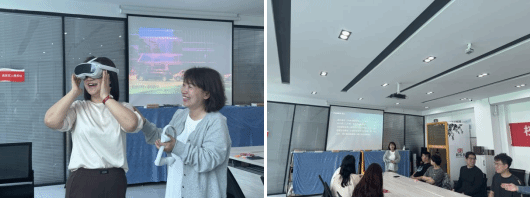 最后出场的是清博教育牛平老师,带来了目前生活中发展最迅速的虚拟现实技术,也称VR。它广泛应用于多个领域,具体包括但不限于医疗健康、游戏娱乐、设计建模、影视制作等等。随后设置了体验区,引导社区居民参与体验虚拟现实技术,了解其应用场景和潜力。