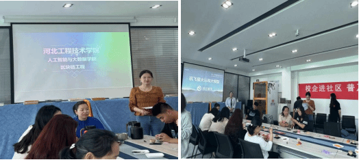 人工智能与大数据学院于2024年5月8日在桥西区南小街社区居委会开展了“校企携手进社区,普及科技惠于民”的主题宣讲活动。此次活动由人工智能与大数据学院副院长孙劼,学管办主任杨家腾带领,宣讲人员有百度卢宇,清博教育牛平,科大讯飞刘彤彤等企业老师。氛围良好,活动达到预期效果。
