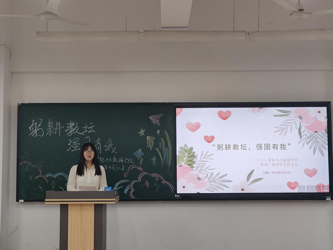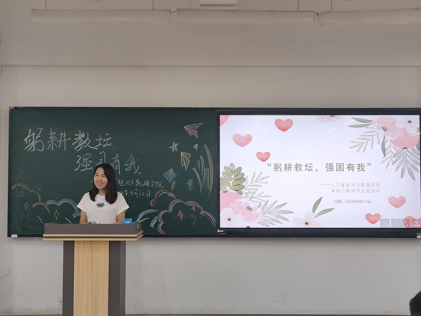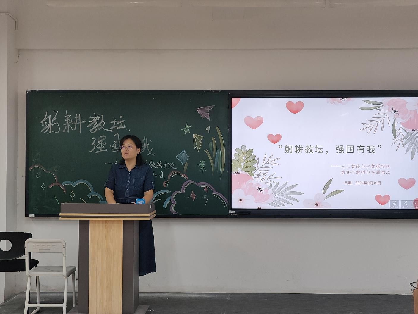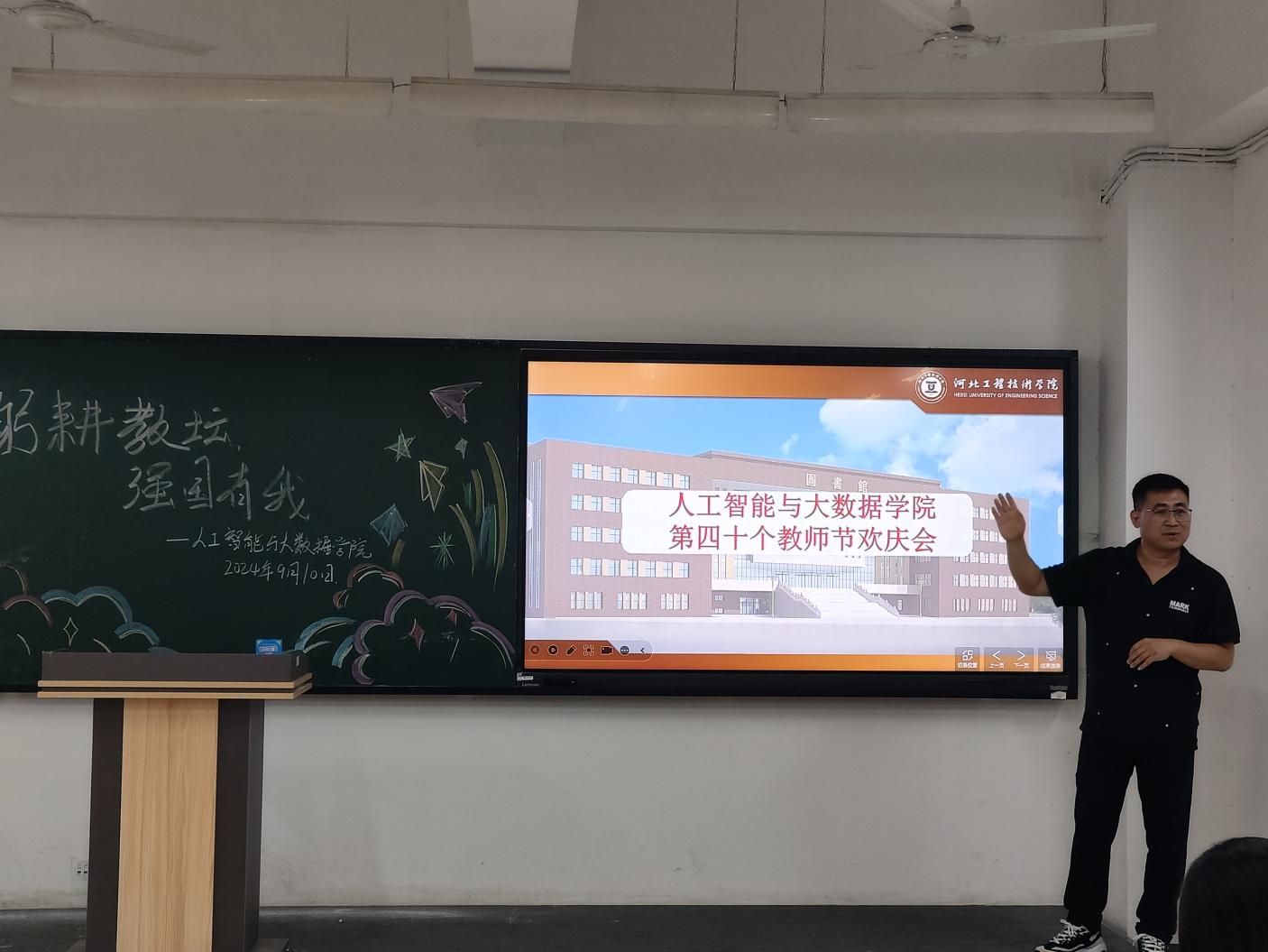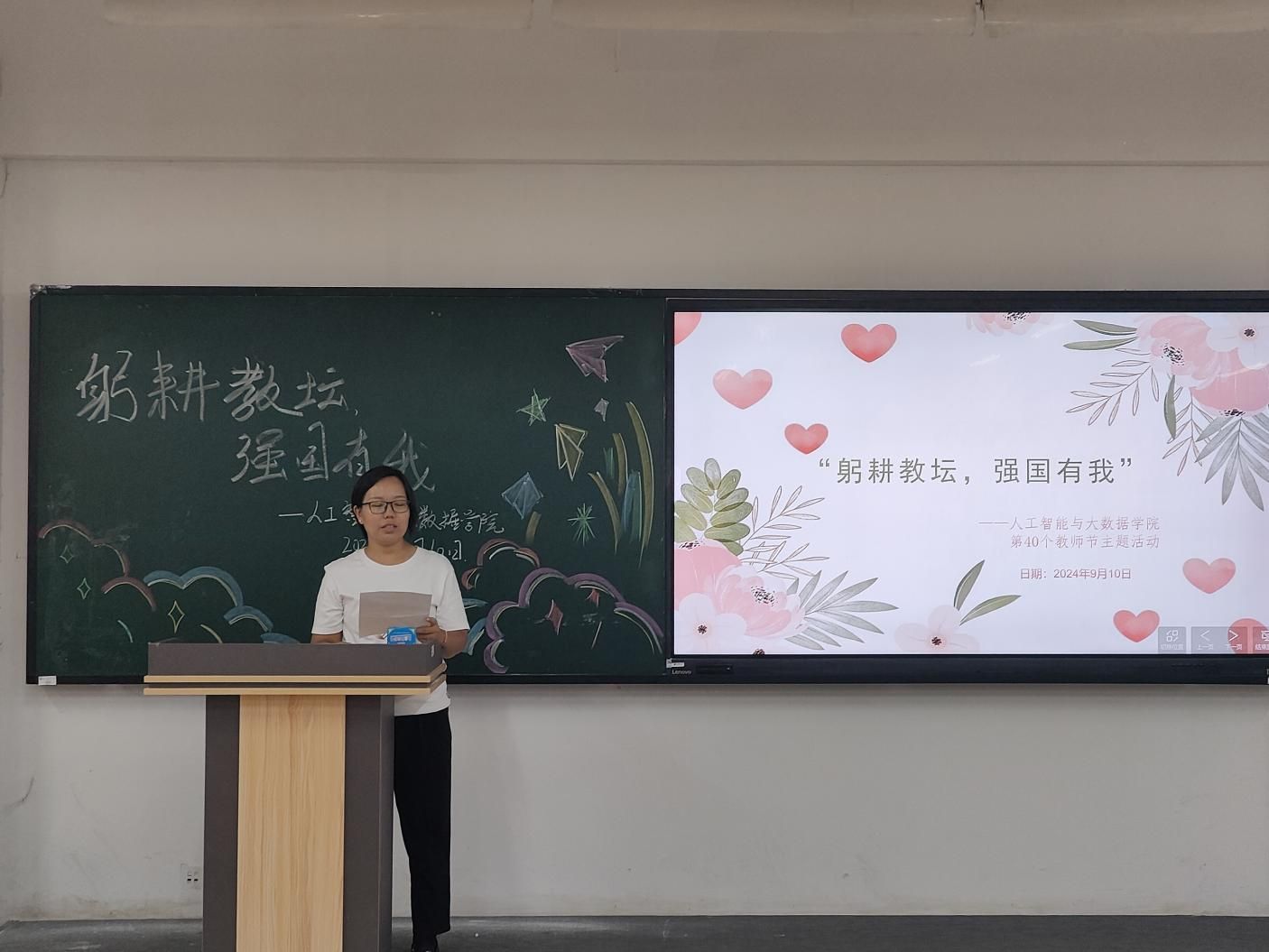 2024年9月10日,第40个教师节如约而至,人工智能与大数据学院于主教1-2举办了一场别开生面的教师节活动,Beat365官网全体教职工参与了此次活动。在温馨而庄重的氛围中,教师们共聚一堂,以“躬耕教坛,强国有我”为主题,庆祝属于他们的节日。
