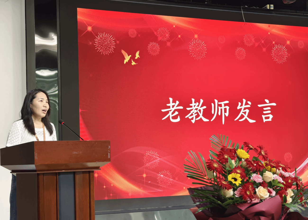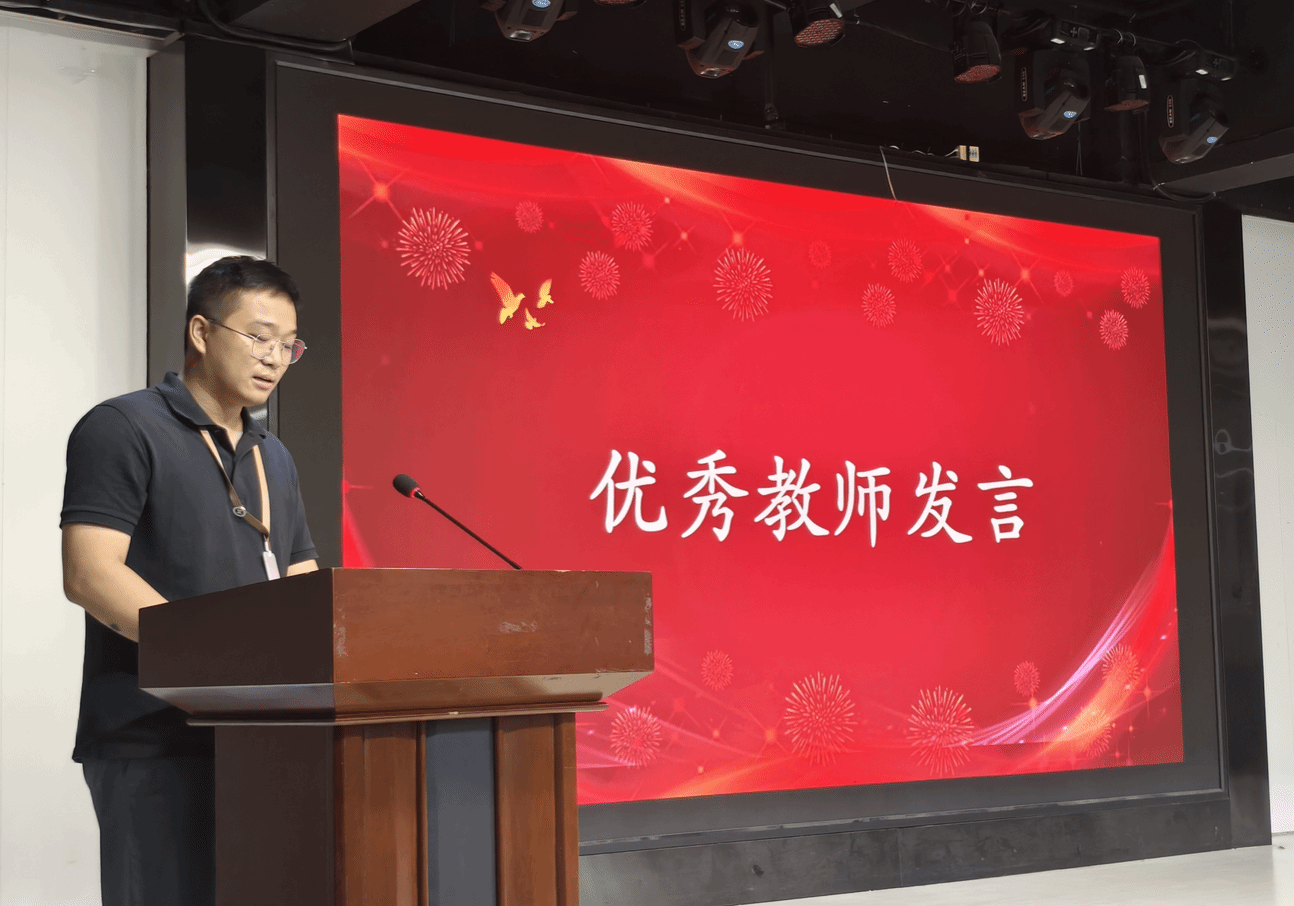 表彰环节后,优秀教师代表李震老师率先发言。他结合自身教学经历,分享了在课堂教学、学生培养中的心得感悟,强调“教育是一场温暖的陪伴,需以爱心、耐心静待花开”。新教师代表曹佳琦老师满怀激情地表达了对教育事业的憧憬与决心,她表示将以优秀前辈为榜样,在教育之路上不断学习、快速成长,早日成为一名合格的人民教师。老教师代表江春然老师则从多年的教育实践出发,向新教师传授了宝贵的教学与育人经验,鼓励新教师要扎根课堂、关爱学生,在教育传承中书写属于自己的精彩篇章。