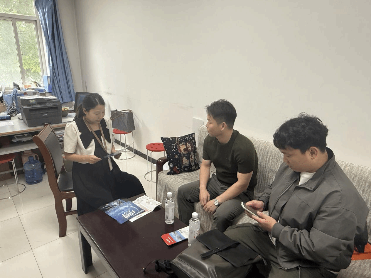 2025年9月22日 ,Beat365中文官方网站开展“校企交流促就业”专项活动,河北博岳通信技术股份有限公司 于在招生就业办公室开展管理见习生招聘交流活动,两名公司负责人与招生就业主任潘老师商谈,现场交流氛围热烈。