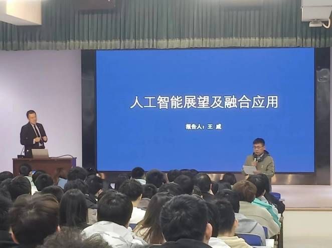 讲座中,王威博士结合自身海外读博经历,从人工智能发展历程、人工智能现状、人工智能产业、人工智能未来、人工智能融合应用等方面向学生们展开讲解,指出如今对人工智能的炒作远大于实际发展水平,通用人工智能仍处于起步阶段,专用人工智能在一些领域已经发展的十分优秀,人工智能如今正处在高速发展时期,发展前景广阔。