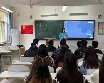 此次"品味书香,享阅读之乐"读书会分为三个部分:第一个部分为准备活动。通过观看课件与团支书讲解,使学生们具体了解此次活动的内容。学生们通过线上和线下两种方式去搜索资料,上网浏览名人名言,线下前往图书馆借阅自己想要分享的图书。学生自发借书,积极参与到活动中来;第二个部分为我行我展。 活动期间,学生们用自己搜寻到的书籍、精彩片段抄录,在读书会上分享自己的心得体会。活动期间学生们侃侃而谈,用诙谐幽默的语言介绍自己分享的书籍;有的用粉笔在黑板上写下精彩语段;有的深入分享自己的读书感受,让学生们增加了对于阅读的兴趣。既激发了学生们的主观能动性,又给学生们留下了深刻印象,引发了读书兴趣,每位同学都参与进来;第三部分为活动总结,围绕活动"品味书香,享阅读之乐"读书会初心,团支书总结了此次活动的主要内容,呼吁本班学生要多读书、读好书。