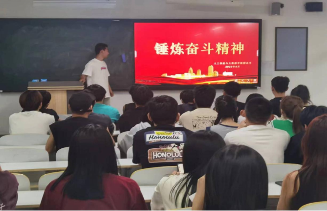 为了发扬艰苦奋斗精神,提倡艰苦朴素、勤俭节约的生活作风,促进青年学生全面发展。人工智能与大数据学院于2023年5月23日组织本学院40名班团干部开展了“锤炼奋斗精神”学习活动,主讲人为学生代表董晋玮 。