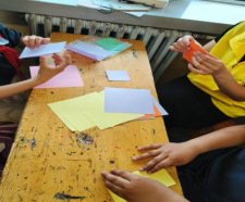 课堂三是“垃圾分类,变废为宝”手工小课堂。本次手工课堂的教学内容是“手工摩天轮”。课堂围绕四个方面展开:“上节内容复习”、“课程内容教学”、“动手操作”以及“作品展示”。课堂开始,志愿者首先向小朋友们分发了手工材料然后详细讲解并示范了摩天轮制作步骤,小朋友们对本次手工制作产生了浓厚的兴趣,课堂充满了欢乐的气氛,在志愿者的指导下,小朋友们尝试着进行折纸。对个别跟不上进度的学生,志愿者老师会及时给予耐心的指导。大家边听边做,互帮互助。课堂最后的展示作品环节,小朋友们看着自己手中的折纸摩天轮,都充满成就感。这次的手工课堂有助于培养孩子们的动手操作能力和想象创造力,也让小朋友们感受到了手工制作的魅力,激发小朋友们的创新意识、创新思维,调动了小朋友们对手工的兴趣。