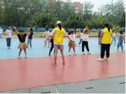 课堂二是“健美操”小课堂。本次的健美操小课堂开展了新的内容:“你笑起来真好看”。活力四射的伴奏声响起,志愿者老师踩着节奏,动作标准地跳起健美操,并进行动作分解,随着教学的一步步进行,学生有节奏地舞动起来,一前一后,一左一右,热情奔放,充满活力的表演,充分展现了他们阳光、活泼、健康、自信的靓丽风采。