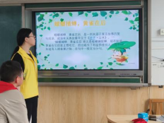 课堂一是“童话成语大碰撞”小课堂。本次课堂的主要内容是“螳螂捕蝉,黄雀在后”。成语解释:螳螂一心在捉蝉,却不料黄雀在后面,正打算要吃他。比喻只看到眼前的利益,却不知祸害就在后面。在课堂上,志愿者老师组织小朋友们各自分组,然后以组为单位,以情景对话的形式进行成语故事的生动演绎,这样一来,不仅让孩子们过足学习成语故事的瘾,激发他们的想象力,也让孩子们理解了成语的含义。通过本次成语的教学,小朋友们从中获得成长启发:做事要善于听取别人的意见和建议。在学校要听取老师的教导,回家多和父母沟通,听取父母的意见,这样我们才能学得更扎实,有好结果。