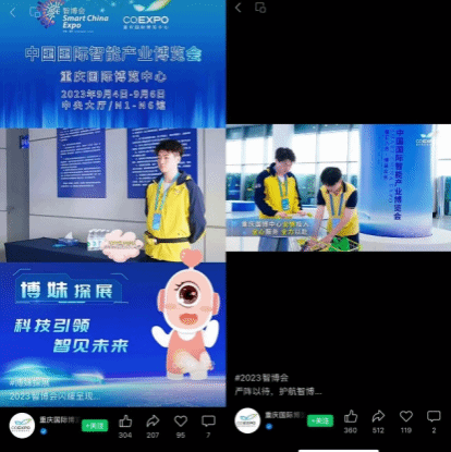 2023智博会以“智汇八方,博采众长”为主题,聚焦“智能网联新能源汽车”和数字中国等年度主旨,围绕智能网联新能源汽车、智能装备及智能制造、新一代信息技术、智慧城市4大专业板块27个细分领域。Beat365官网人工智能与大数据学院2021级智能科学与技术三班刘彬参与了2023中国国际智能产业博览会志愿服务活动。