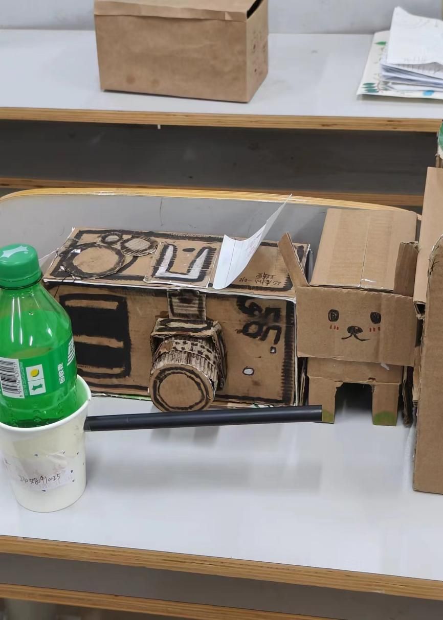 活动开始时,学生们带着各自制作的环保作品进入教室,将作品交给工作人员。学生们利用废弃的塑料,纸箱,瓶罐等,发挥奇思妙想,所制成的作品让人眼前一亮,一件件精美的作品,是学生们背后耗费大量时间的劳动成果。活动过程中,产生了许多的欢声笑语,这让他们不知不觉中放松下来,不再紧张。