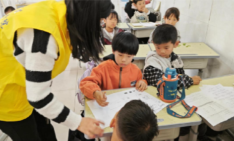 活动过程中,志愿者们在不同的教室中充当起了老师的角色,维持课堂纪律,监督学生学习,保证了活动的质量,为公益教学得以顺利进行提供了重要保障。不止如此,志愿者们还负责辅导小学生们当堂的作业,帮助学生们高效率完成。