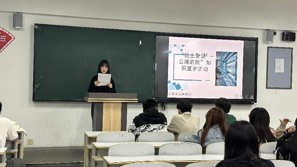 人工智能与大数据学院云链世界社团于2024年4月18日19:00-20:00在主教103教室组织开展了“链上智慧,云端启航”知识宣讲活动。
