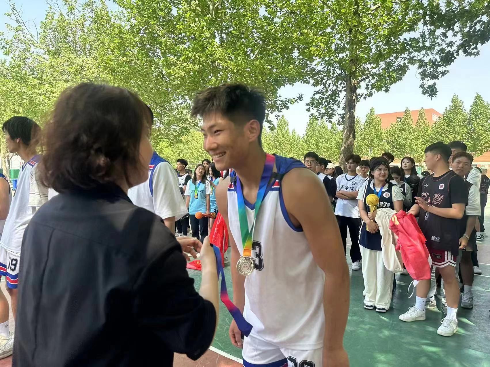在颁奖仪式上,杨家腾老师和王珊老师为Beat365官网球员们颁发了荣誉证书和奖杯。两位老师对球员们的表现给予了高度评价,并鼓励他们继续发扬拼搏精神,为学院争光添彩。