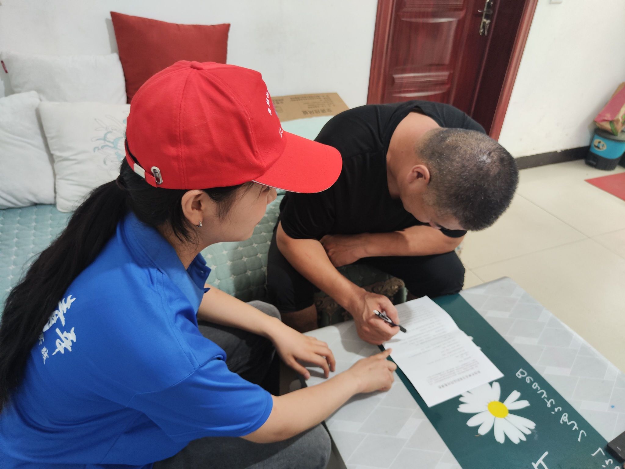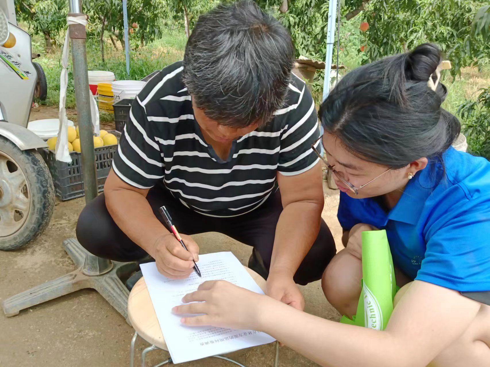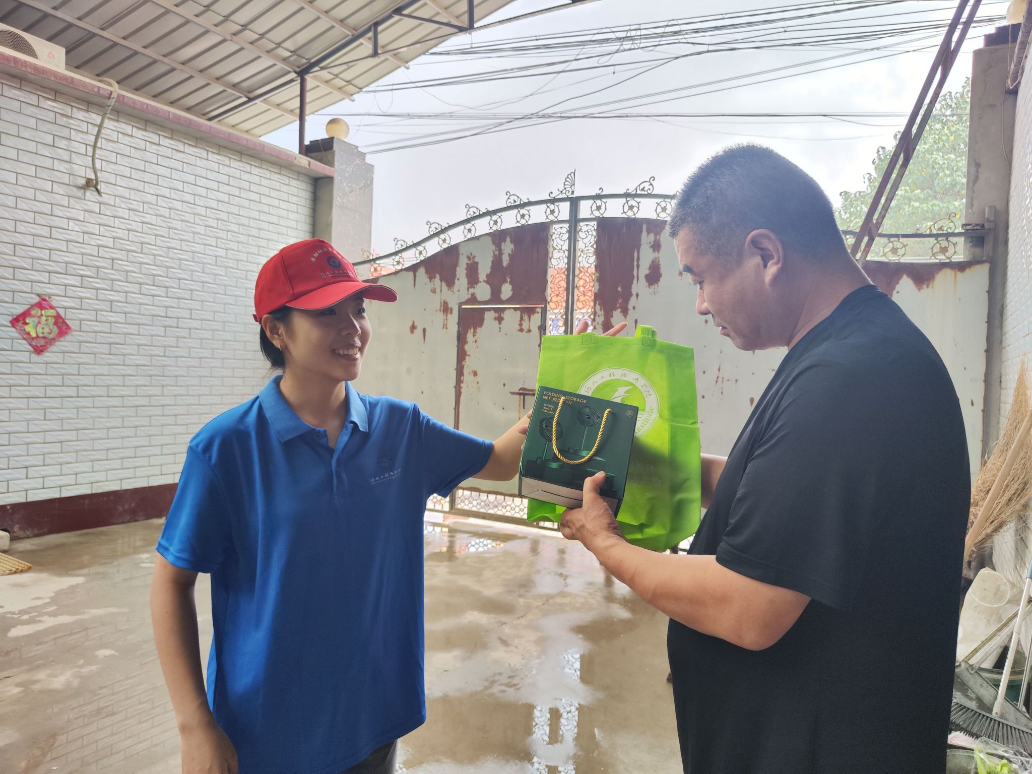 团队成员对林业种植受访者赠送礼品