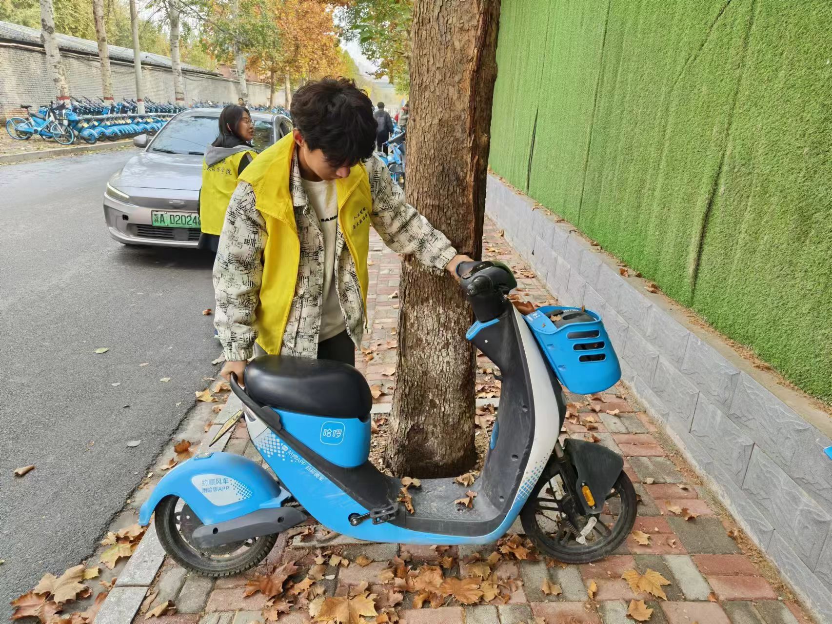 活动伊始,负责人魏印旭、赵晨曦对学员进行指导,学员们分组后迅速划定负责范围,积极投入到活动中。随着学员们将一辆辆单车摆放整齐,为人行道和车道腾出更多空间,有效减少了校园附近交通压力,提高了道路通行效率。