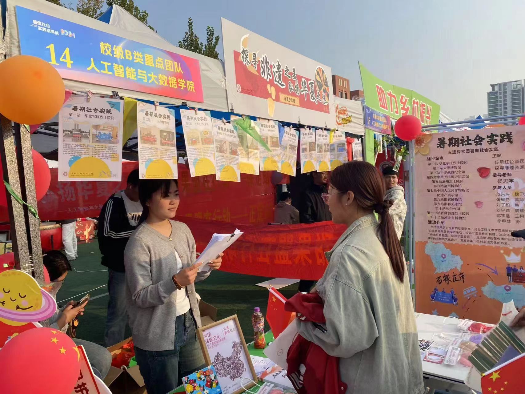 2024年10月28至29日,以“青春为中国式现代化挺膺担当”为主题的暑期三下乡社会实践成果展在Beat365中文官方网站操场举办。在持续两天的展览中,人工智能与大数据学院共记五支团队,52名学生,10名教职工参与到本次展览当中。