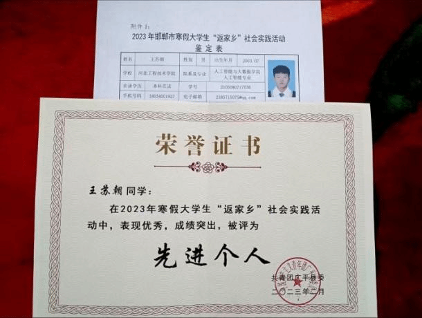人工智能与大数据学院2021级人工智能3班王苏朝在寒假期间积极响应号召,报名参与了广平县寒假返家乡大学生实践活动,成为“桑梓计划”中的一名活跃分子。在此期间参与了多项工作,用自己的实际行动为家乡的发展贡献了一份青春力量。