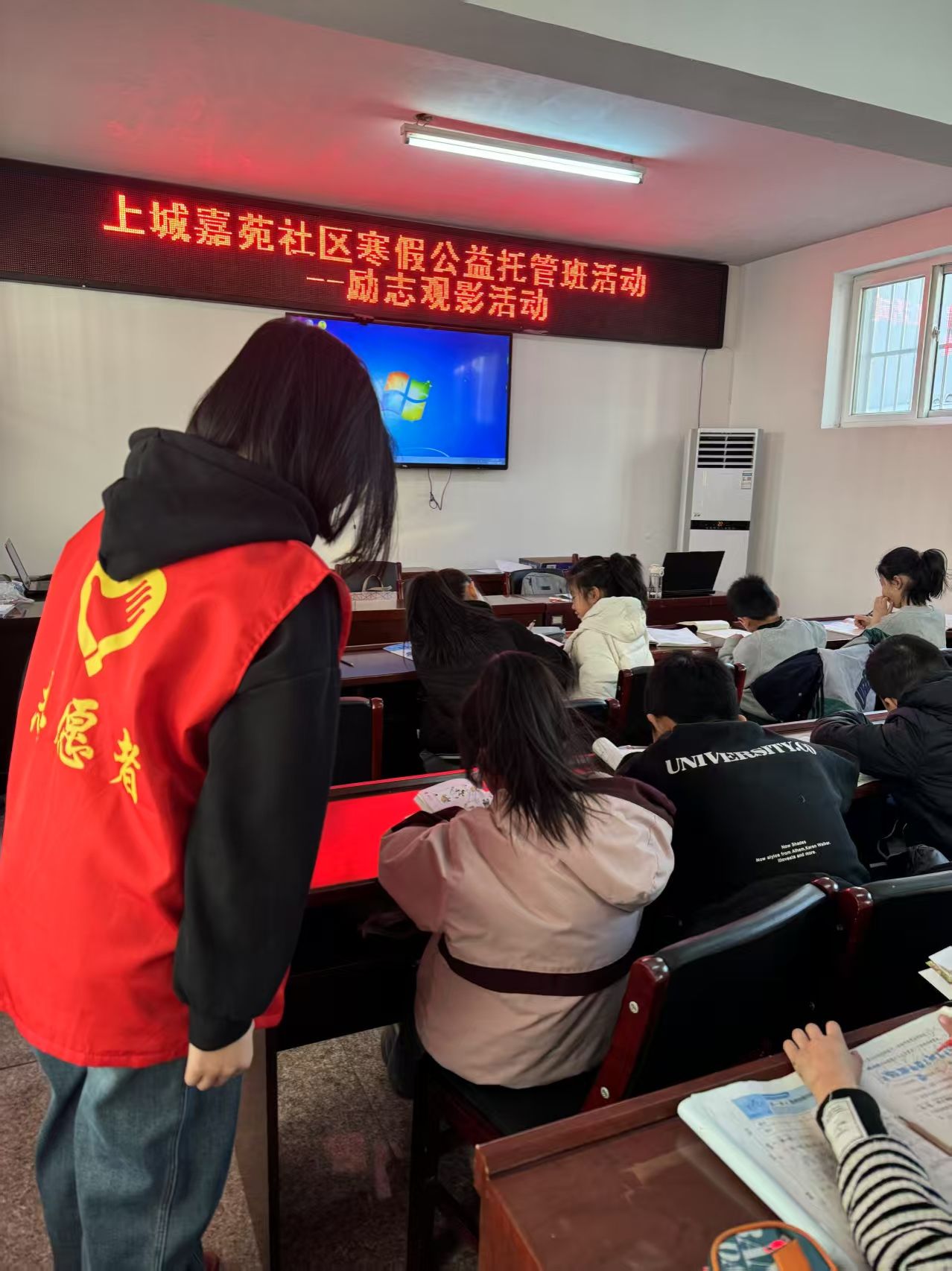 此次返家乡实践活动,武佳琪参与了社区的寒假公益托管班活动。每天,她都会与其他志愿者一起,为小朋友们准备不同的丰富多彩的实践活动,耐心守护小朋友们的成长。遇到学习中有困难的小朋友,她会放慢语速,用通俗易懂的语言反复解释,直到对方完全明白。