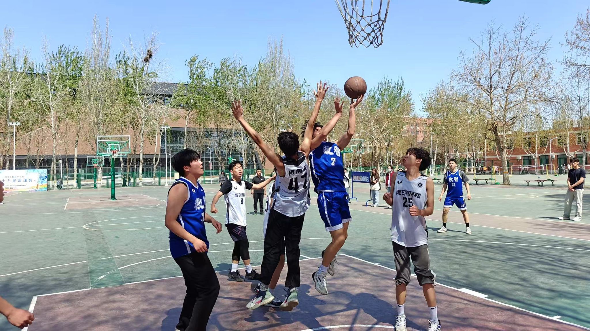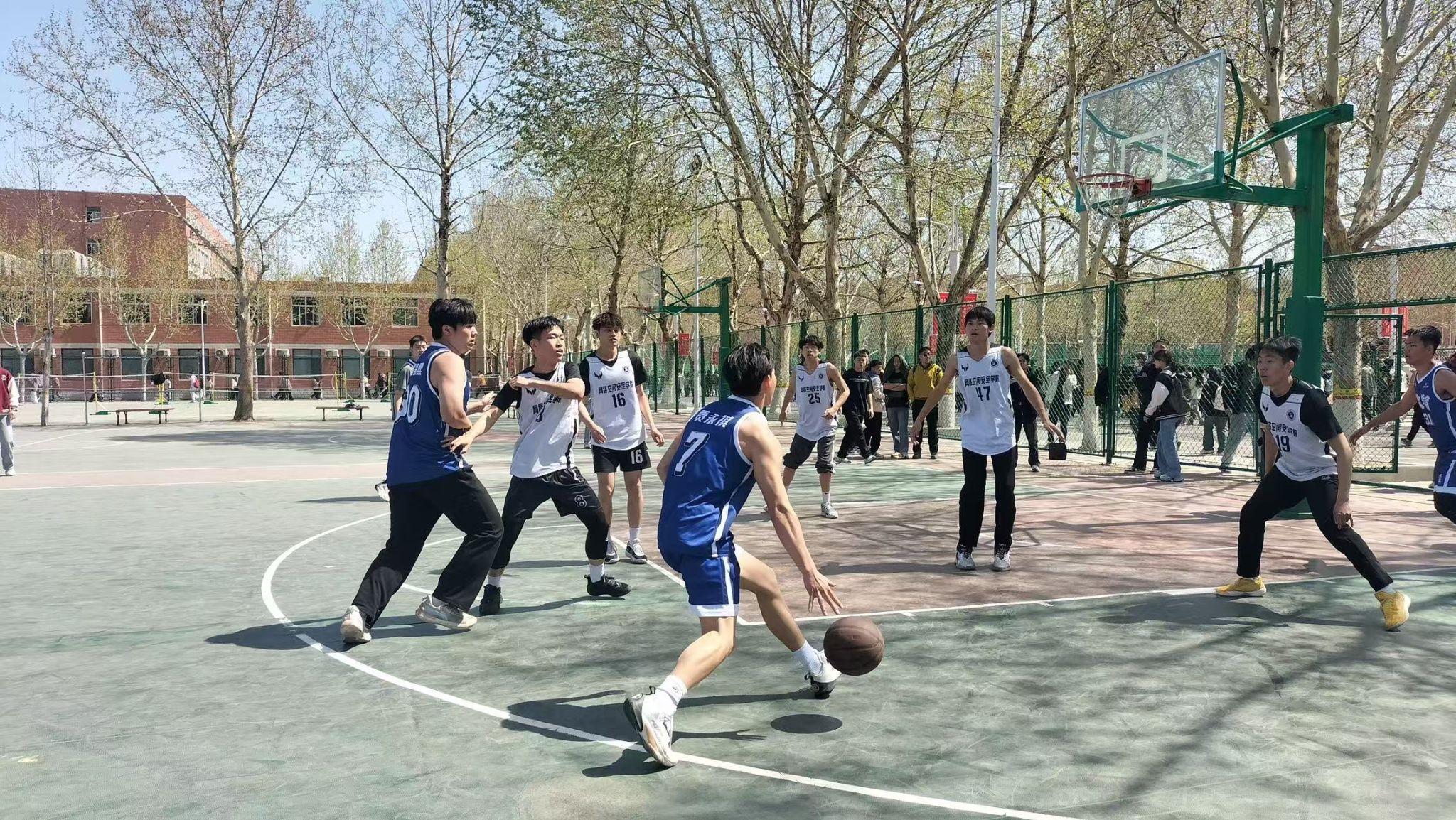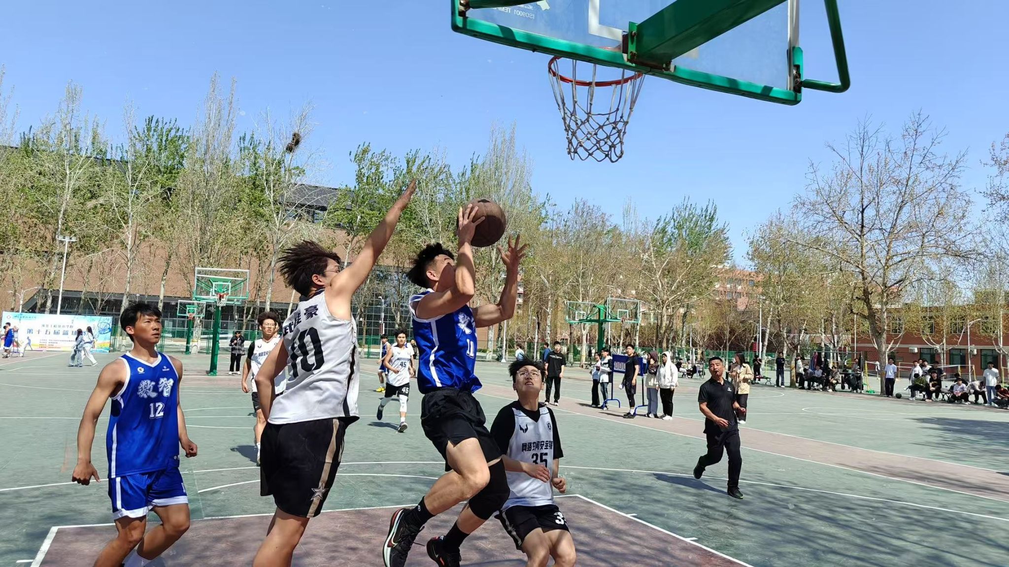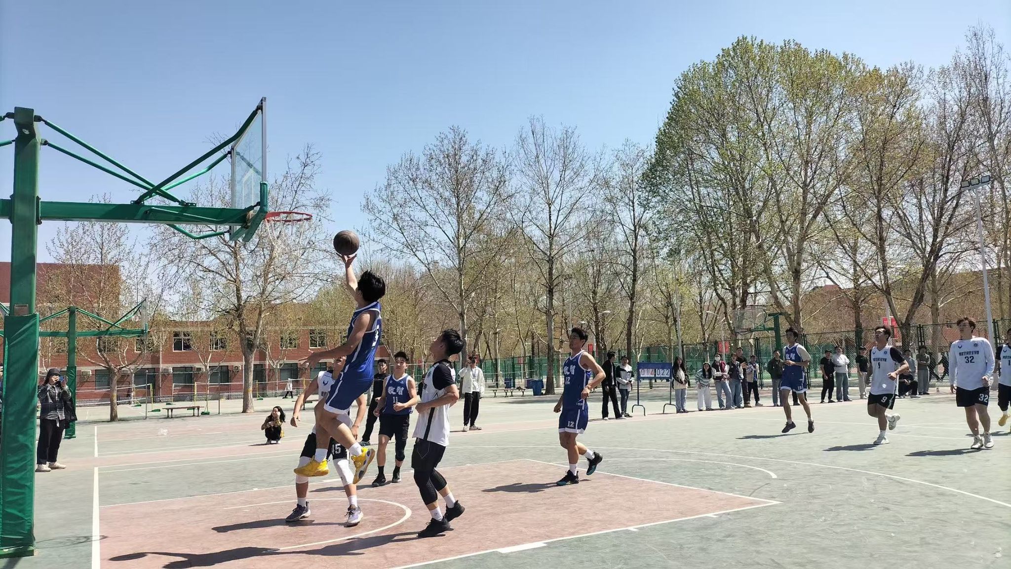 人工智能与大数据学院男子篮球队于2025年4月1日12:00在篮球场参加第十五届篮球竞赛男子组半决赛,并取得了比赛的胜利。
