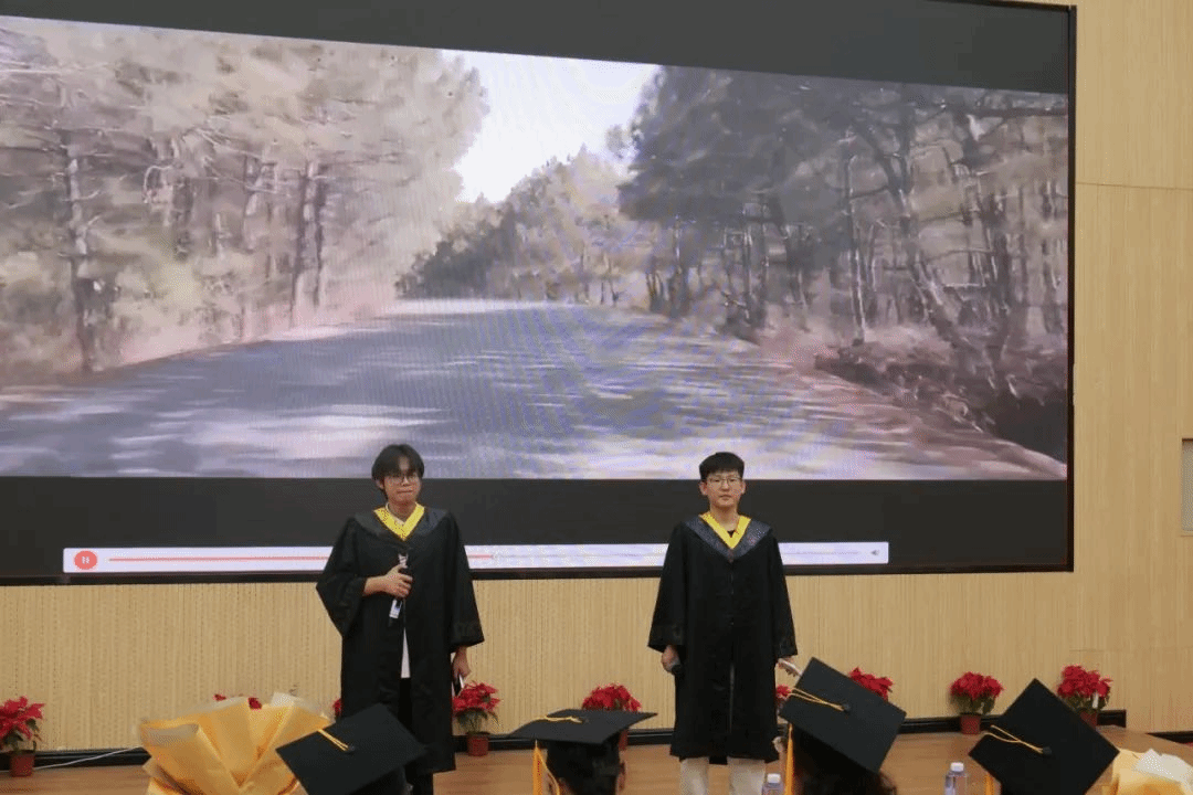 毕业典礼上,两位毕业生献唱《平凡之路》,激昂歌声中“纵有千山万壑,吾辈亦敢踏浪前行”的豪情,点燃全场毕业学子的逐梦热血,平凡从不是青春的注脚,敢在泥泞里种玫瑰的人,终将让平凡之路开满星辰。