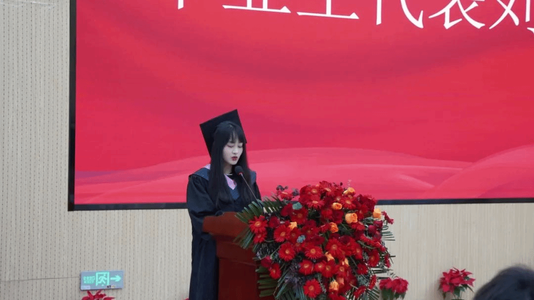院长王静红致辞中,向毕业生表示祝贺、向师长致谢,回顾学生大学成长历程与取得的成绩,并以“心怀家国、勇于创新、砥砺奋斗”三方面嘱托共勉,愿同学们逐梦前行,母校永为后盾,祝毕业快乐、前程似锦。