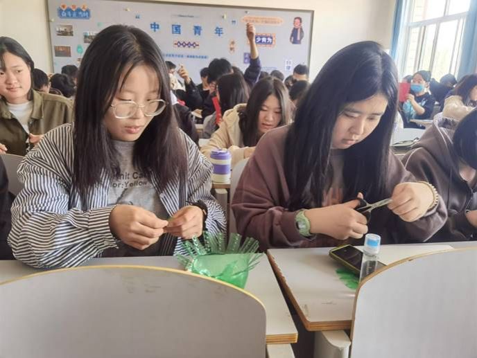 “我们把这些一次性筷子组合起来,与塑料瓶结合就可以做一个实用的笔筒....”,在人工智能与大数据学院手工微课堂上,同学们在思政教研室主任吴曼老师的带领下动手旧物改造,锻炼劳动技能,助力低碳生活。3月13日至3月17日人工智能与大数据学院开辟手工微课堂,全面打造“大思政课”育人格局新模式。