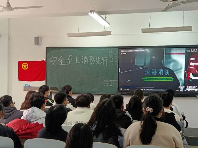 此次班会由各班团支书主持并主讲,各班委辅助进行。首先,由各班团支书阐述有关消防安全事故案例背后所隐藏的安全隐患,学生深刻意识到学习并正确运用消防安全知识在危急关头对保障生命安全的重要性;紧接着学生回顾思考曾经学过的消防安全知识并交流学习,运用这些知识探讨如何预防校园中存在的安全隐患;之后,各班团支书带领学生认识安全标识并正确使用消防器材,掌握预防安全事故与发生灾情时的逃离和自救本领;最后,通过观看消防影片,学生明白消防安全事业的不易,并向在消防一线消防员们致敬。