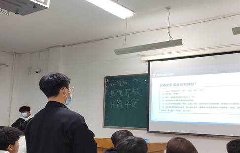 班会开始,全体成员提前到场。班会上,班长带领同学们深入学习以习近平同志为核心的党中央关于总体国家安全观、国家安全工作的重大部署和要求。积极引导同学们谈一谈自己对国家安全的认识和理解。并向同学们展示了与国家安全教育相关视频。班会最后,班长要求全体同学将自己对此次班会的感悟和心得写下来