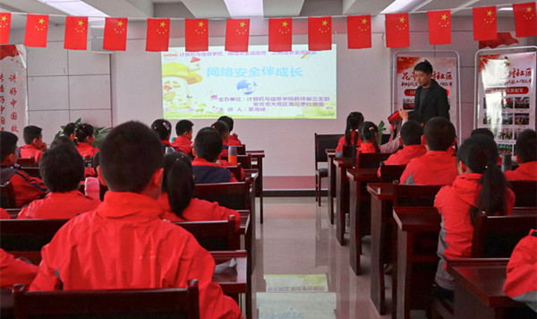 10月17日下午,开云kaiyun官方网站教师第三党支部赴安庆市高花亭北村社居委开展网络安全主题宣讲活动,为社区学生开展“网络安全伴成长”知识讲座,并发放了安全知识宣传材料。讲座由学院第三支部组织委员吴海峰副教授主讲,来自高花亭小学的50余名学生聆听了讲座。