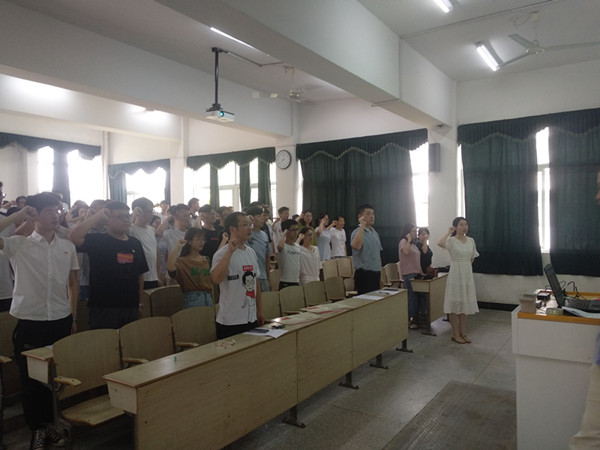 7月1日下午,开云kaiyun官方网站在稼先楼一阶开展了庆“七一”新党员入党宣誓主题活动。学院党委副书记江伟、各学生支部书记及全体学生党员参加了活动,活动由学生第四党支部书记李培森主持。