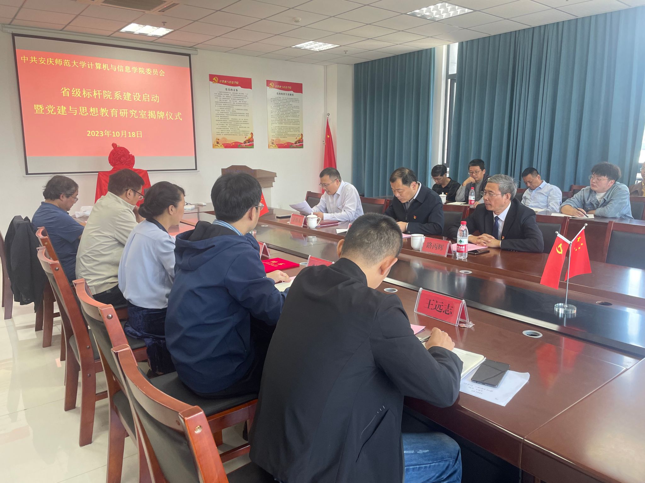 会上计裕人宣读了《中共安徽省委教育工委关于公布第二批全省高校党建“双创”培育创建单位名单的通知》,并共同为学院党建与思想教育研究室揭牌。学院党委书记陈银凤为路丙辉教授颁发研究室顾问聘书,并介绍了标杆院系创建的现实基础和建设方案。