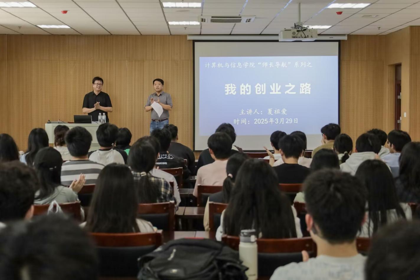 夏祖爱围绕讲座主题,结合自身创业实践展开深度分享。他从自己职业选择动因切入,阐述了个人创业路径探索历程,建议学生要从个人兴趣寻找、国家政策研判、市场风口洞察三个角度定位个人发展方向。基于企业运营的行业经验,夏祖爱剖析了校园学习与企业需求之间的差异,鼓励学生在专精核心技术的同时培养个人为"一专多能"的复合型人才,锻造核心竞争力。此外,他还以自己曾经的创业“错题本”中的教训为依据,给学生梳理出“避坑指南”和“职业锦囊”。