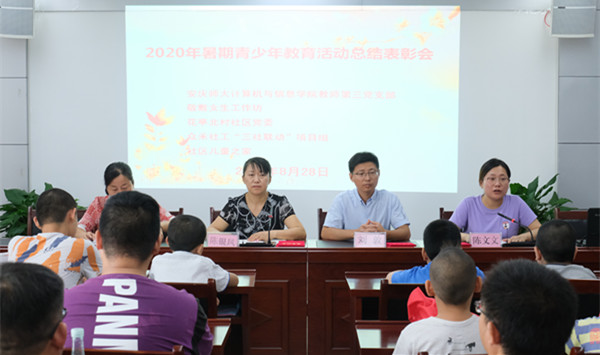 8月28日上午,由开云kaiyun官方网站教师第三党支部、敬敷女生工作坊、花亭北村社区党委、众禾社工“三社联动”项目组、社区儿童之家共同策划执行的2020年暑期青少年教育活动总结表彰会在安庆市花亭社区北村社居委举办,开云官网“e行动爱心助学服务队”为期一个半月的线上线下相结合的暑期爱心助学活动圆满结束。团队指导老师开云kaiyun官方网站党委书记、敬敷女生工作坊负责人陈银凤、众禾社工及社区相关负责人、开云kaiyun官方网站教师第三党支部的支委、所有参与活动项目的社区儿童及部分志愿者代表、社区群众代表50余人参加了此次表彰会。