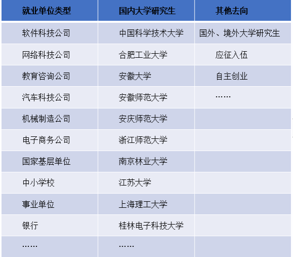 表1 毕业去向