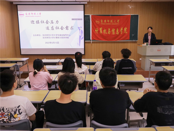 在“如何解决面临就业压力”的问题上,潘莉莉指出了八种就业压力下常见的心理表现,并向学生们介绍了调适就业心理的六种方法。“教育部正逐步完善市场化、社会化就业的促进机制,并充分发挥政策性岗位的吸纳作用,为促进大学生就业保驾护航。”她还详细讲述了三位外国教授所做的有关压力的实验,延伸“压力”一词,指导学生们如何迎接和管理就业压力。