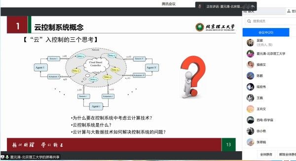 夏元清教授分别就云控制系统的产生背景、关键科学问题、最新研究进展及所面临的挑战等方面作了介绍。他指出,传统的控制技术难以满足高品质和实时控制的要求,为此,云控制系统(Cloud Control Systems,CCSs)的概念被创造性地提出,控制的实时性因为云计算的引入得到了保证。通过各种传感器感知汇聚而成的海量数据储存在云端,在云端利用人工智能等智能算法,实现系统的在线辨识与建模,结合模型预测控制、数据驱动控制、云网边端协同控制等先进控制方法实现系统的自主智能控制。报告会后,开云官网多位教师和同学就实验环境选择和边缘计算等内容与夏教授进行了深入交流,同学们都表示受益匪浅。