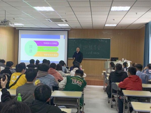 3月29日,学院王一宾教授在龙山校区L楼314教室作《计算机与信息类专业考研指导》报告,共120余名有志愿报考研究生的大三学生参加报告会。