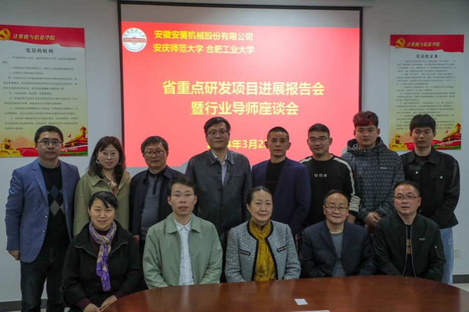 3月22日,学校召开“安徽省重点研发项目进展报告会暨行业导师座谈会”。校党委常委、副校长吴琼出席会议。安徽安簧机械股份公司副总经理黄昌文,合肥工业大学博士马冰,项目组成员、学院负责人参加会议。