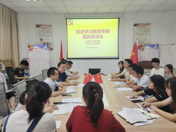 2021年7月14日上午9:30在稼先楼108会议室,学院学生第二党支部召开了党史学习教育专题组织生活会。学校党委组织部副部长、党校常务副校长计裕人参加会议,对会议进行了督导和巡听。学生第二党支部全体党员参加会议,学院党委副书记江晋剑列席会议,党支部书记陆佳主持会议。