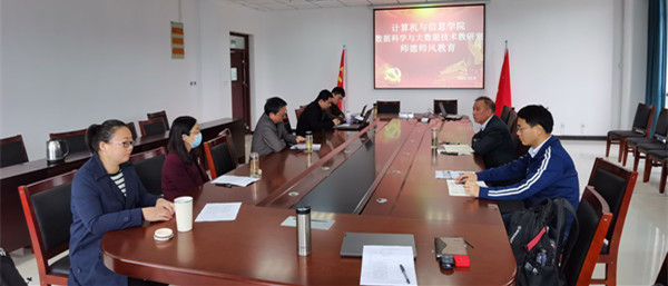 为深入贯彻落实新时代全国高等学校本科教育工作会议和全国高校思想政治工作会议精神,推进学院课程思政工作深入开展,落实学校师德师风建设问题专项整治工作动员会精神,11月6日,学院数据科学与大数据技术教研室在L楼318开展了“课程思政”教学研讨和师德师风建设专题学习活动。学院院长王一宾教授担任思政课点评评委。