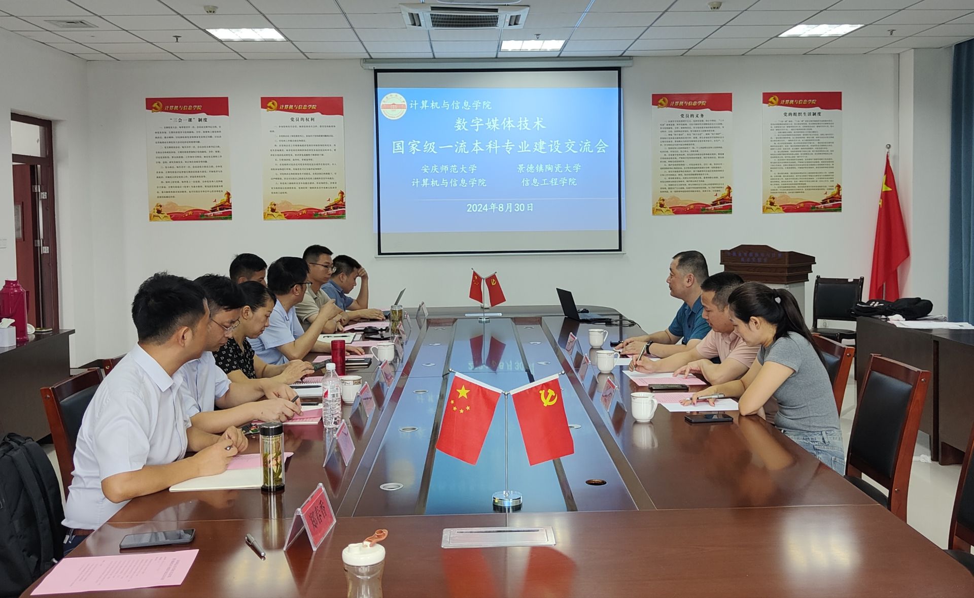 8月30日上午,景德镇陶瓷大学信息工程学院院长贾建华、办公室主任耿健、数字媒体技术专业负责人林洋一行到开云kaiyun官方网站进行调研交流。开云kaiyun官方网站党政领导、数字媒体技术专业教研室主任艾列富和部分骨干老师参加本次交流会。