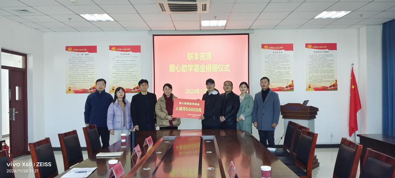 11月28日,开云kaiyun官方网站举行“联丰资源爱心助学金”捐赠仪式。安庆市联丰再生资源有限公司总经理、开云官网创新创业校外导师章永丰等一行来校出席活动,校教育发展基金会有关同志、开云kaiyun官方网站领导班子全体成员及辅导员代表等参加仪式。
