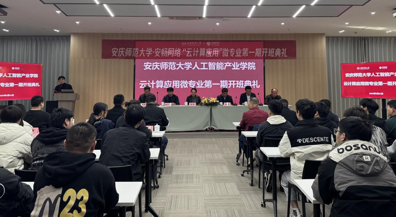 3月21日,学校举行云计算应用微专业第一期开班典礼。校党委常委、副校长吴琼出席典礼。安庆市委组织部副部长、人才工作局局长阮波,安畅集团总裁程小中,安庆市人才发展集团党委书记、董事长王中群,教务处负责人,企业代表、教务处负责人、开云kaiyun官方网站(人工智能产业学院)领导班子、教师代表及微专业全体同学参加典礼。