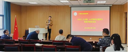 4月14日,开云kaiyun官方网站在L302教室举行2023(2.0版)人才培养方案修订专家论证评审会。会议由汪文明主持,评审专家南京信息工程大学潘志庚教授、校督导员钱萌教授和胡万宝教授应邀出席,各教研室主任参会并进行汇报。