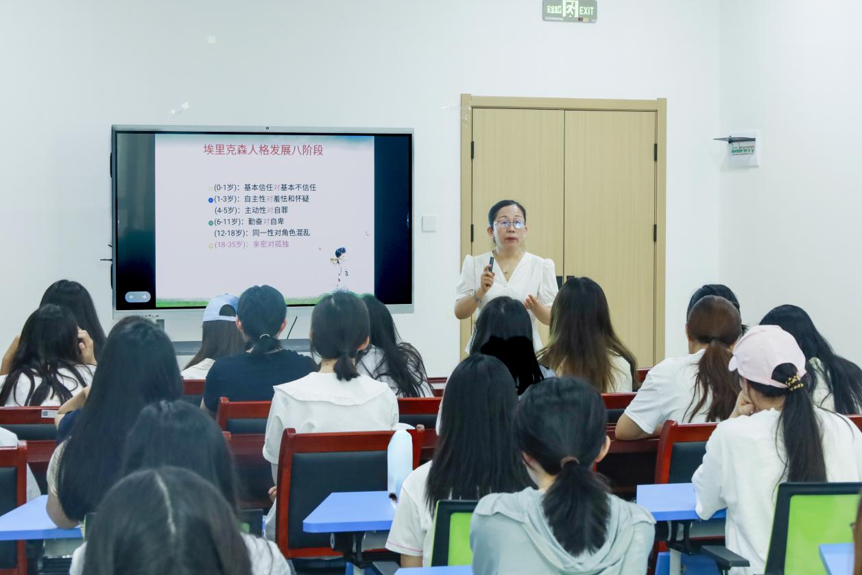 李艳通过调研现场学生恋爱情况,剖析了校园恋爱、网恋等不同恋爱形式下的受众人群心理特征,并结合“埃里克森人格发展八大阶段”理论指出,建立亲密关系是18-35岁青年群体的重要议题,而大学阶段正是女大学生尝试学会学会“爱人”,培养亲密关系构建能力的关键期。她强调,这一阶段对情感的探索与认知,将直接影响个体未来人际关系模式的建立与心理健康发展。