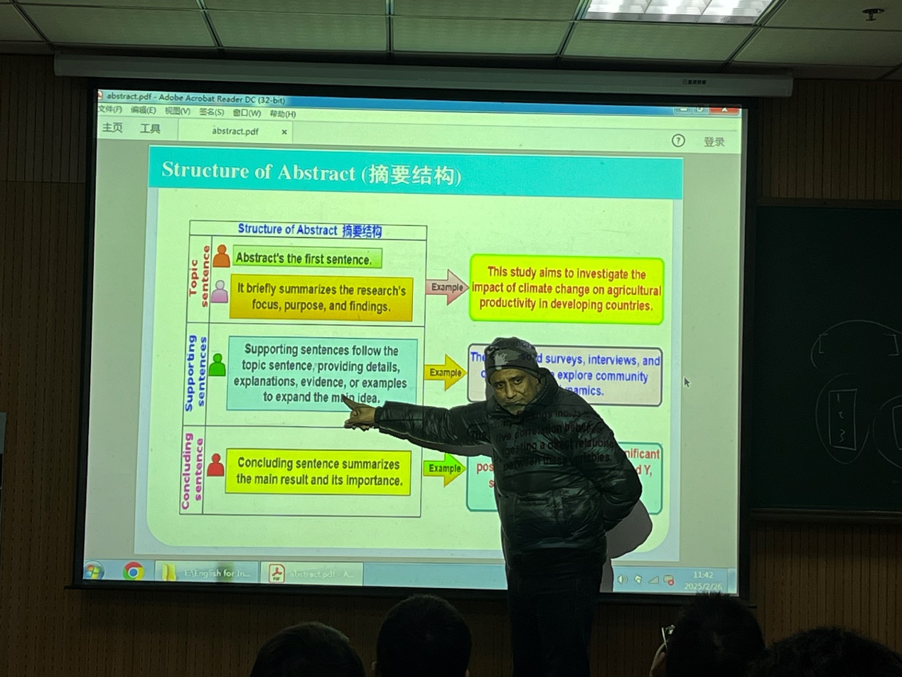 2月26日,开云kaiyun官方网站外籍副教授阿里(Ali)在计算机楼二楼多媒体教室,面向学院部分研究生作了一场极具实用价值的学术报告,题为《掌握写作引人入胜且具有影响力的摘要的技巧》。