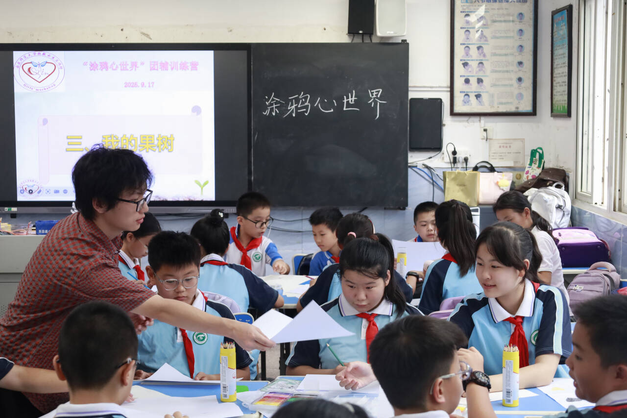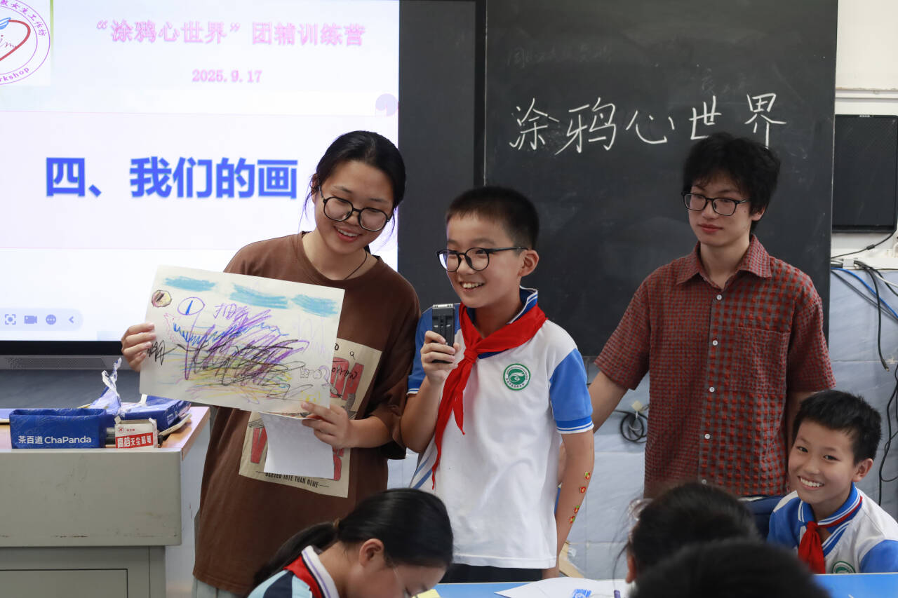 参与活动组织的余同学表示,她能清晰地感受到课堂前后孩子们的变化。一些小朋友在辅导前比较内敛害羞,只小声的说着自己的看法,经过互动引导后,他们变得勇于举手展现作品,尤其是在“画笔追逐”环节,教室里满是学生的惊呼声,大家都深度融入其中,她说:“这次活动让我收获颇丰,学到了诸多与学生相处的方法,比如关注课堂状态、鼓励有特别想法的学生等,更坚定了我要成为一名心理老师的想法。”